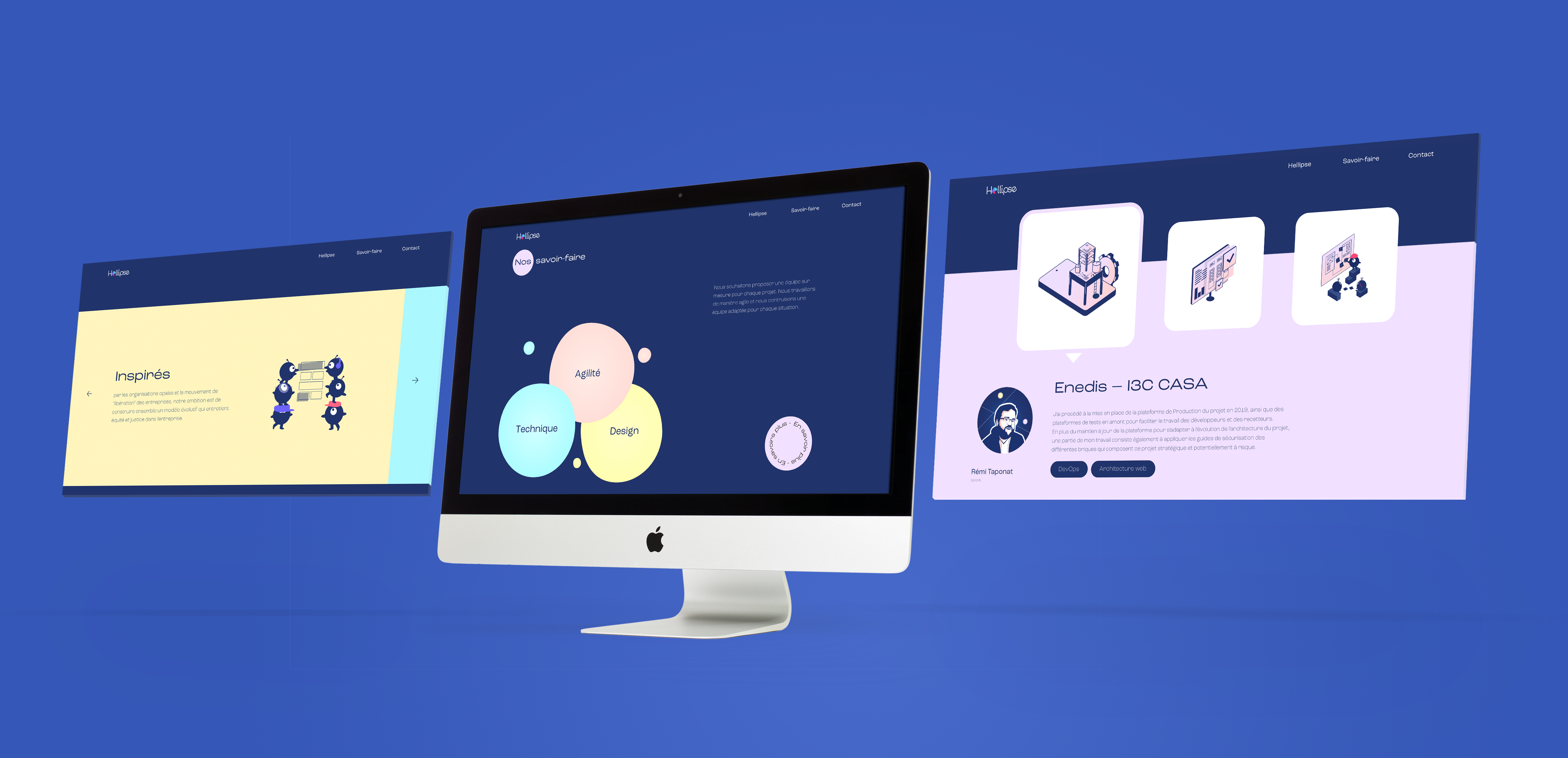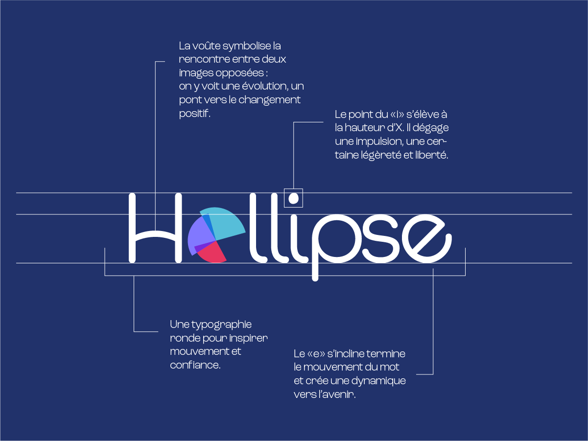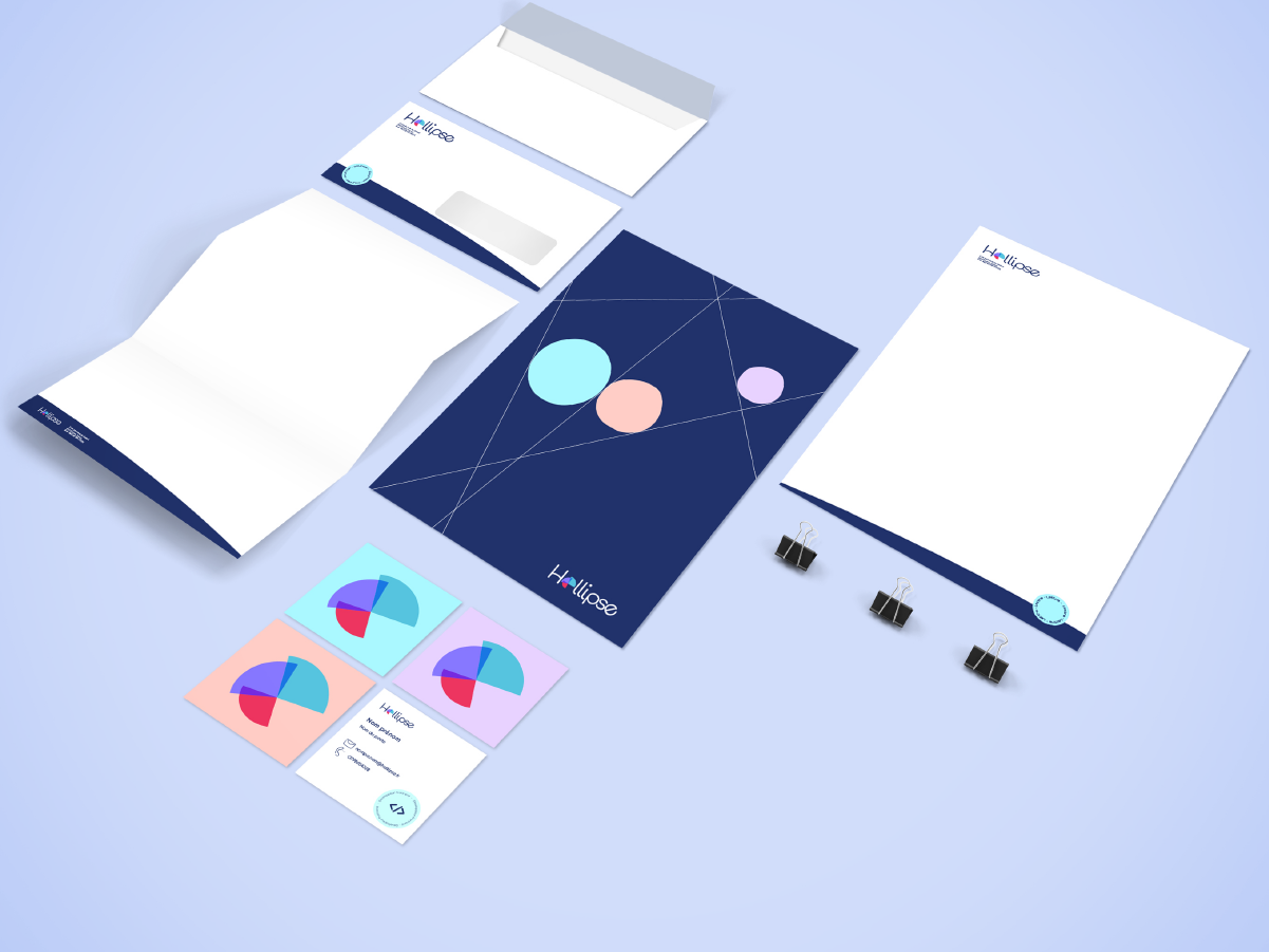 Les besoins d’Hellipse étaient assez bien définis à mon arrivée : étant une jeune entreprise, il leur fallait communiquer sur leur existence et leurs activités. Mon travail en tant que Directrice Artistique était de comprendre le sens de leur fonctionnement, ce qui les animait, et ce vers quoi ils tendaient pour être au plus juste dans ma retranscription graphique en parlant à la bonne cible sur le bon ton. Bien sûr, cette communication allait aussi passer par plusieurs canaux et supports que j’ai aidés à mettre en place tout au long de cette année.