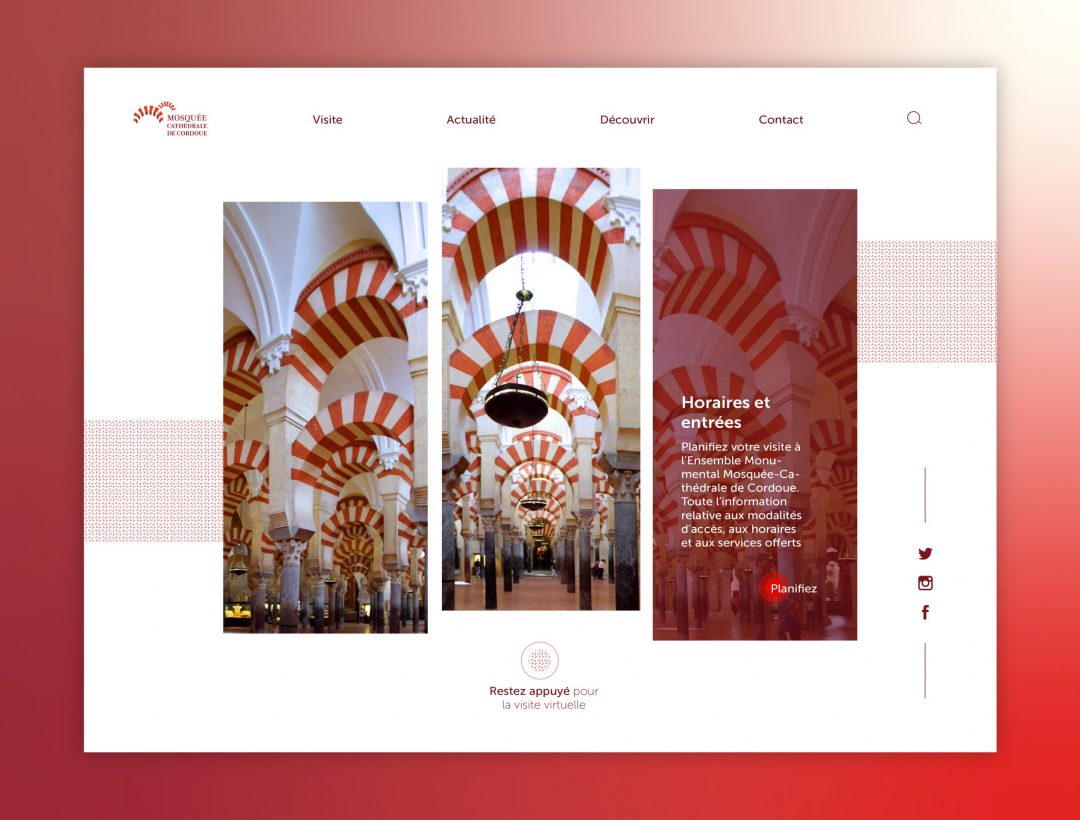 Dans le cadre d’un module en direction artistique, je devais créer l’identité graphique d’un monument historique. Le but étant de retravailler en priorité le logo, la papeterie, et les objets vendus dans la boutique souvenir. J’ai choisi pour ce projet de me pencher sur la Mosquée Cathédrale de Cordoue, qui est un symbole de la coexistence des religions chrétienne et musulmane.